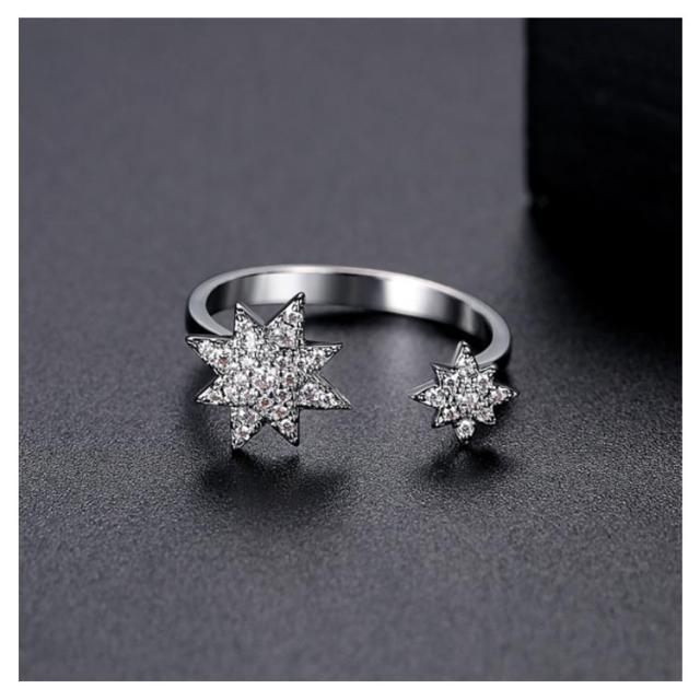 送料無料 リング レディース 指輪 キュービックジルコニア ホワイト 真鍮 シルバー 可愛い かわいい カジュアル モチーフ スター 星 フリーサイズ 大人気 可愛い かわいい おしゃれ