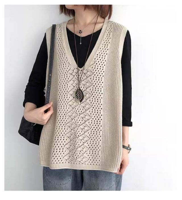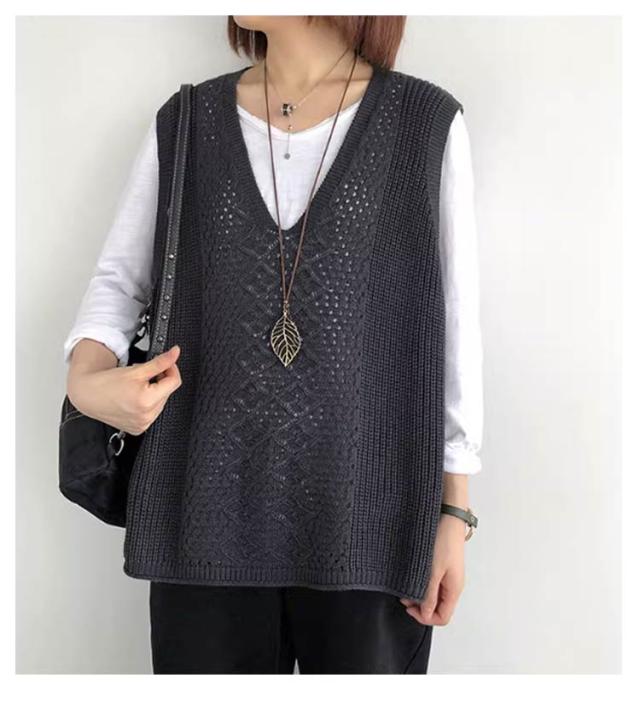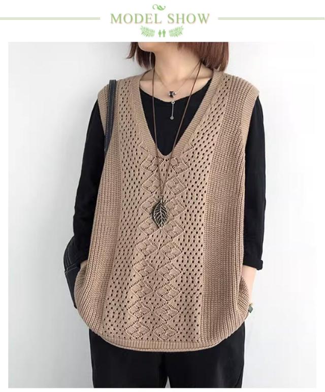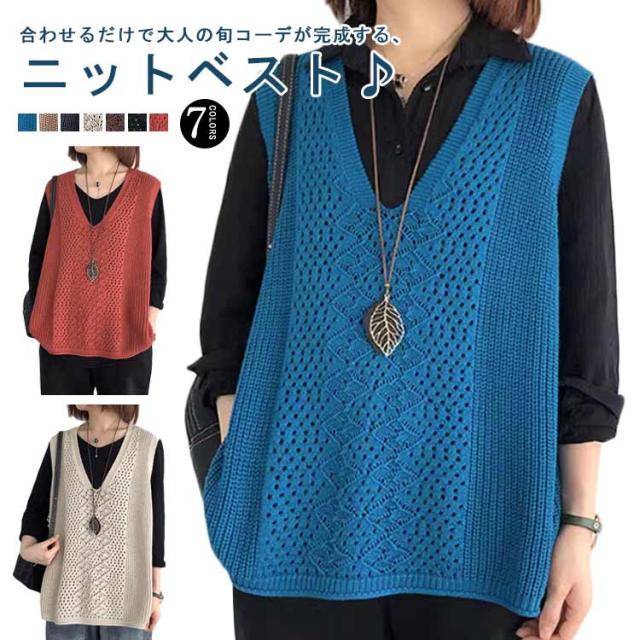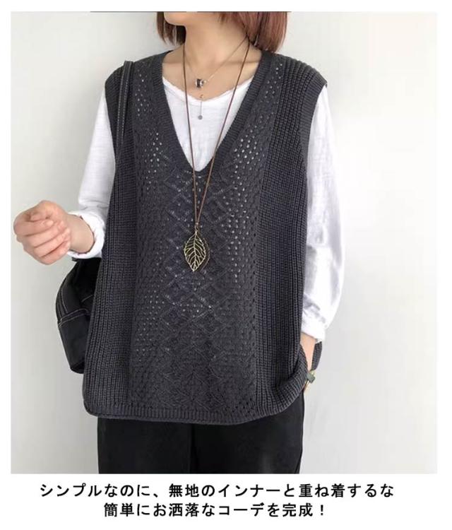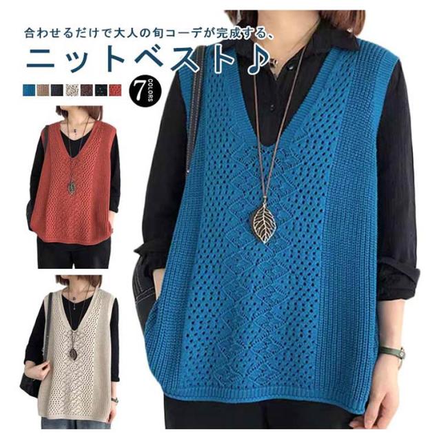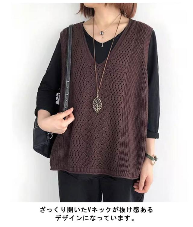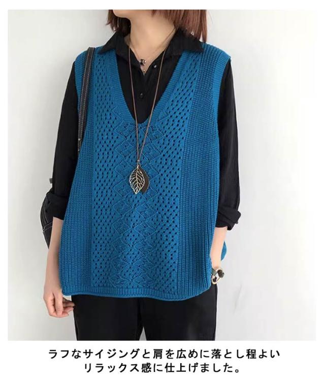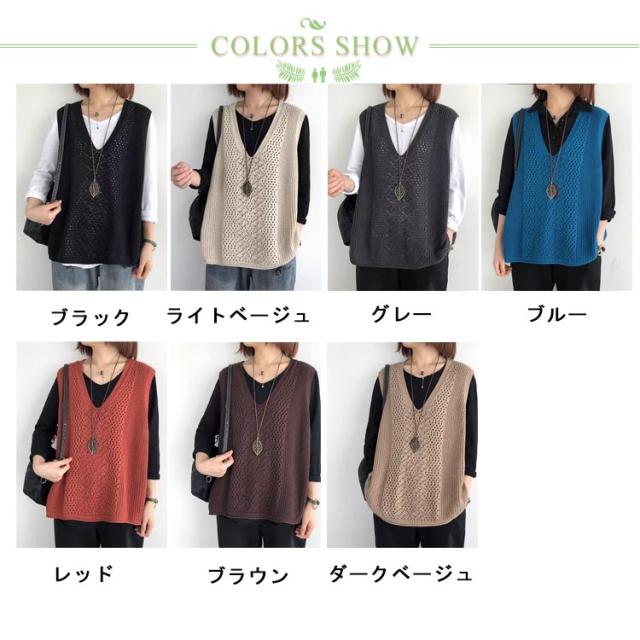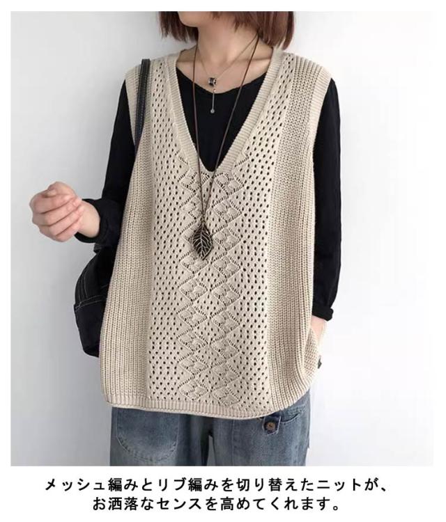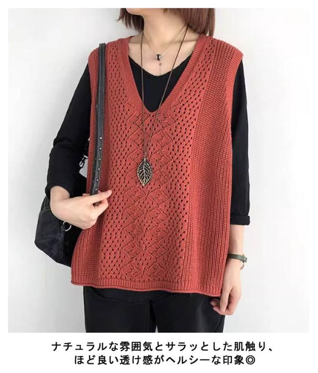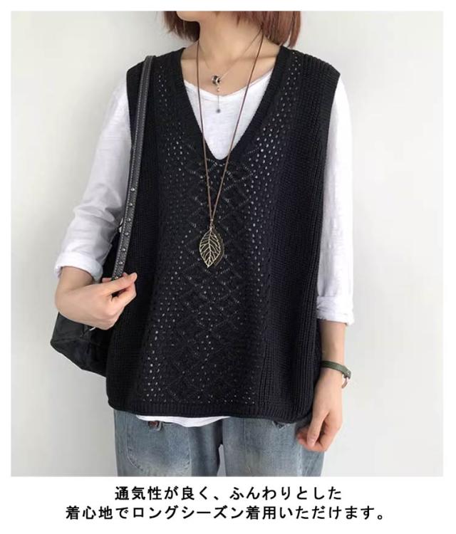 ショート丈 サマーニット ゆったり 透け感 編み柄 着痩せ 着まわし 重ね着 無地 エレガント サマーニット 上品 春 ニットベスト 【送料無料】Vネック プルオーバー ノースリーブ 大きいサイズ 春ベスト 通勤 通学 40代 30代 レイヤード