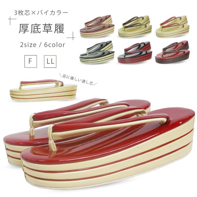 3枚芯とバイカラーのオシャレな厚底草履です。