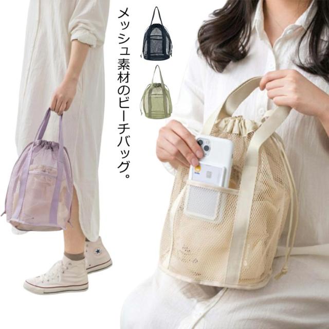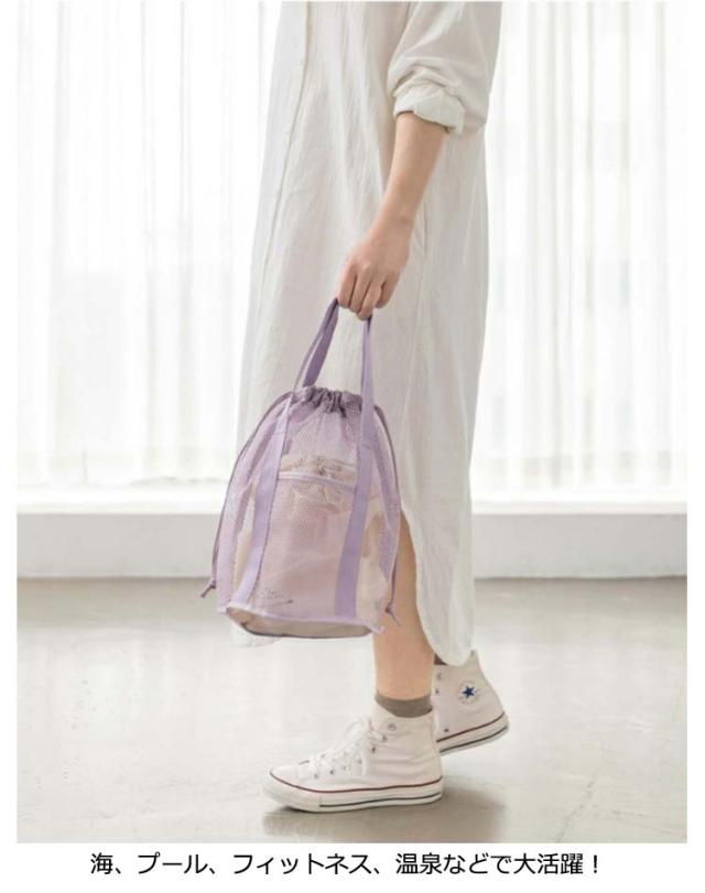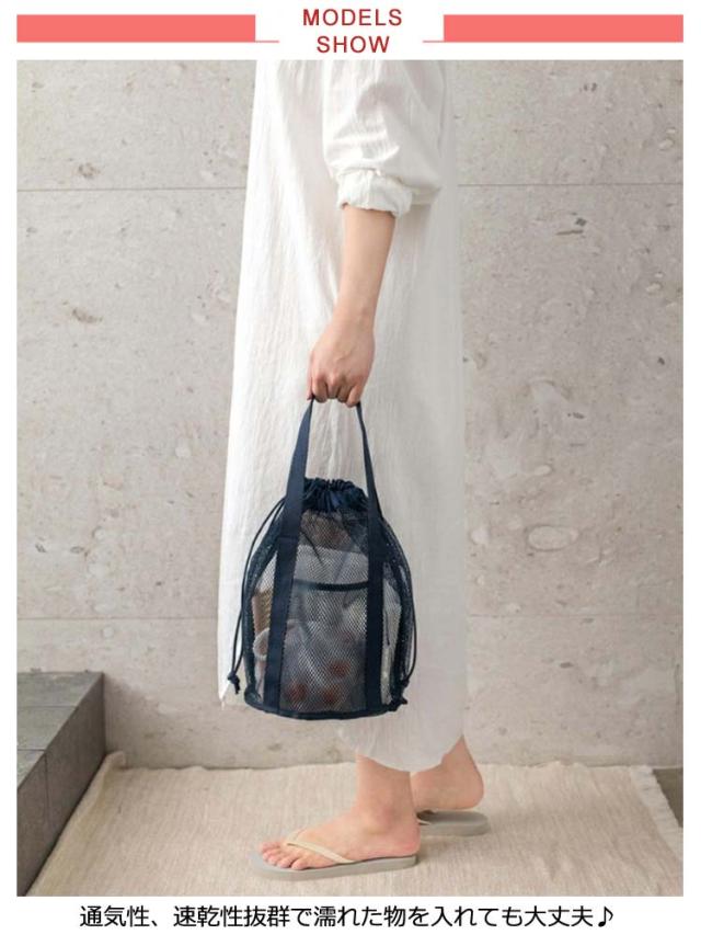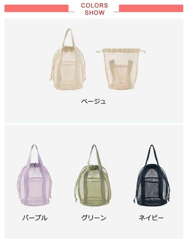 | メッシュ素材のビーチバッグ。 通気性、速乾性抜群で濡れた物を入れても大丈夫♪ 海、プール、フィットネス、温泉などで大活躍! 日常にも使えて便利なバッグです。 | |