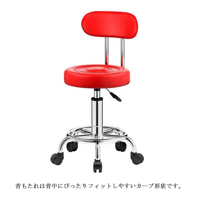 | 背もたれのある、座ったままでちょっとの移動に便利なキャスター付きスツール。 背もたれは背中にぴったりフィットしやすいカーブ形状です。 キッチンなどでの作業中に、座ったままで移動できるキャスター付き。移動させやすいのでお掃除もラクラク。 昇降機能付きで、座りやすく、作業もしやすい高さに調整できます。 座面には汚れても水拭きできる合成皮革を使用しお手入れがカンタンです。 ソファのような座り心地で長時間座っても疲れにくいです。 ダイニングやデスク、キッチンなどお家の色々な場所でお使いただけます。エステサロンや美容室の作業用サロンスツールにも最適。 | |