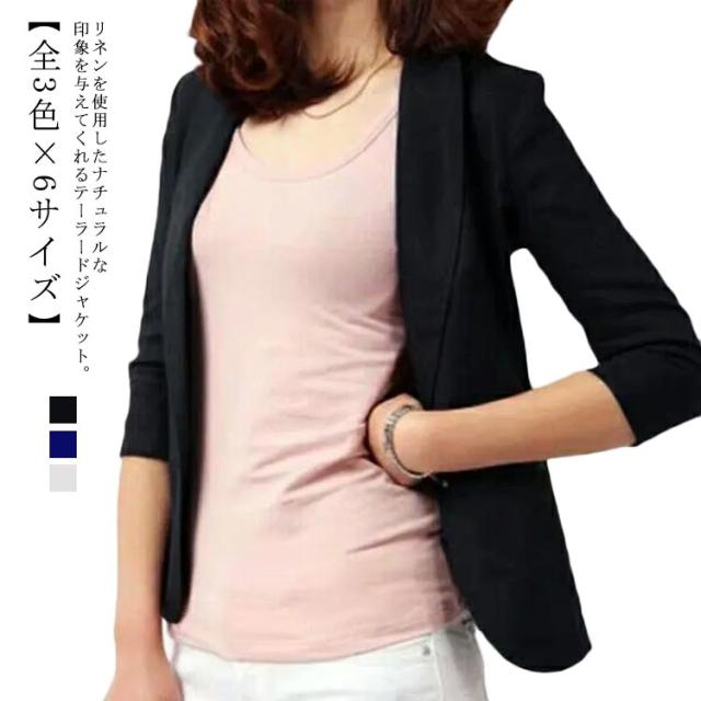 テーラードジャケット 綿麻ジャケット 春ジャケット 薄手 黒 テーラードジャケット リネンテーラードジャケット 七分袖 サマージャケット 綿麻 レディース 夏ジャケット 春 夏 アウター ジャケット 白 ホワイト ブラック 送料無料