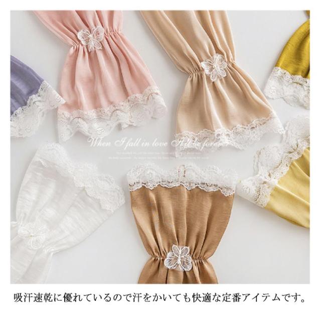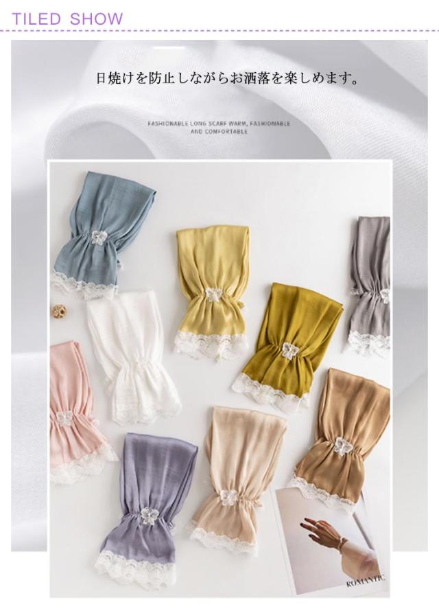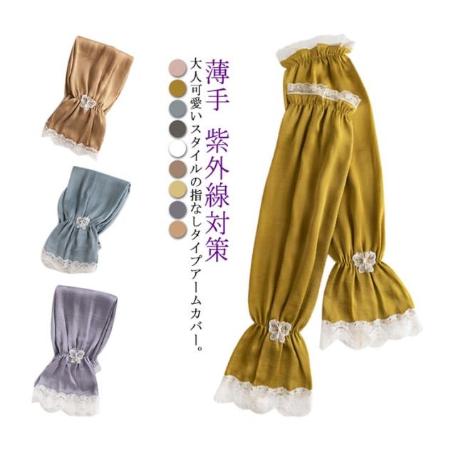 | レース仕様の可愛く上品なアームカバー。 ロング丈タイプだから、紫外線をしっかりガードします。 ゆるくやわらかいゴムできになる二の腕部分もゆとりがあります。 真夏に羽織りを我慢して羽織る必要がありません。 指なしタイプなので、付けたまま細かい作業もできます。 どんなコーディネートと組み合わせてもワンランクアップのお洒落になる。 | |