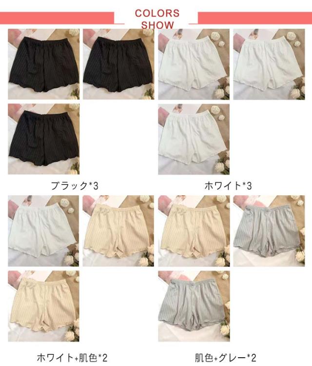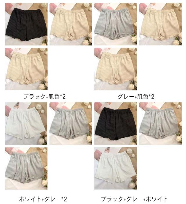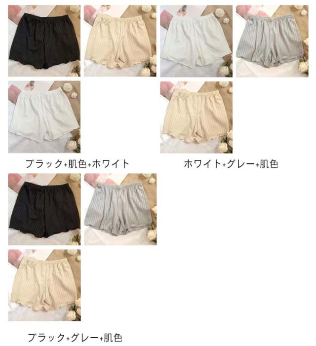 3枚セット インナーパンツ ペチパンツ ペチコート ショートパンツ レディース 下着 春 夏 透け防止 ボトムス 送料無料 裾フリル シンプル ウエストゴム 薄手 接触冷感 ひんやり 涼しい 見せパン 大きいサイズ ルームウェア