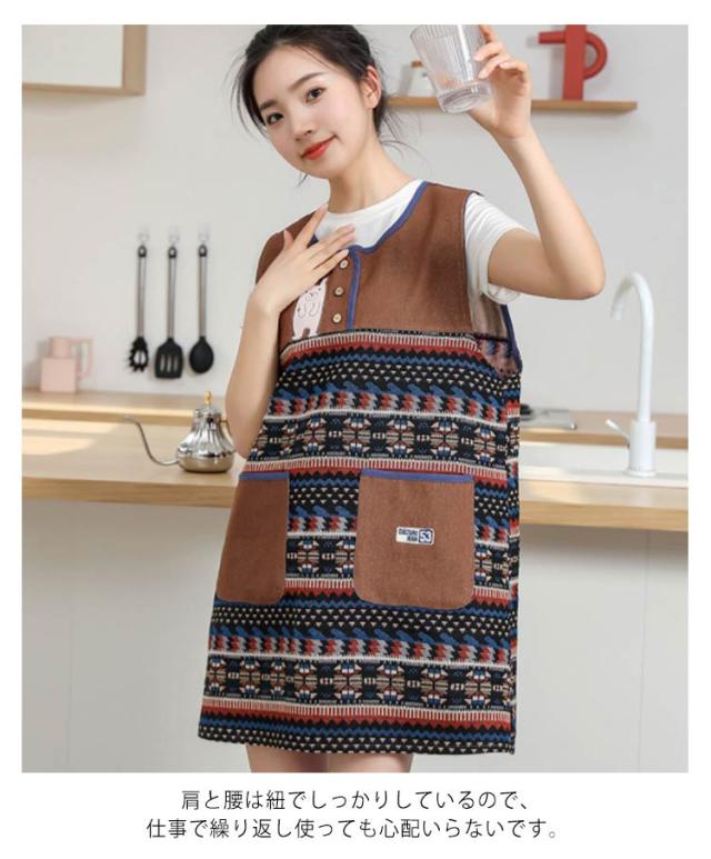 エプロン 保育士 エスニック おてんばママ プレゼント 汚れ防止 レディース 大きいサイズ 料理 介助 大人可愛い 介護士 キッチン用品 ポケット付き 保育園 幼稚園 家事 お洒落 送料無料