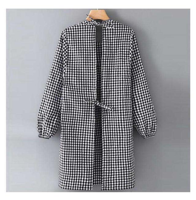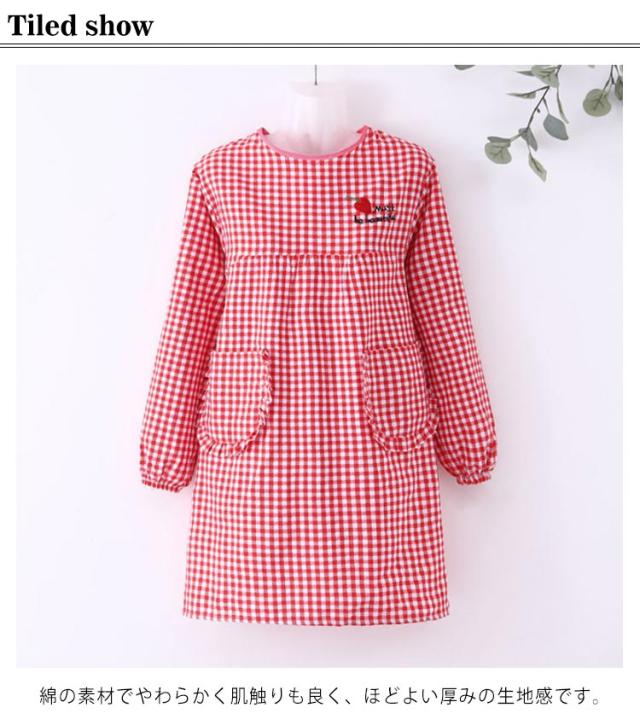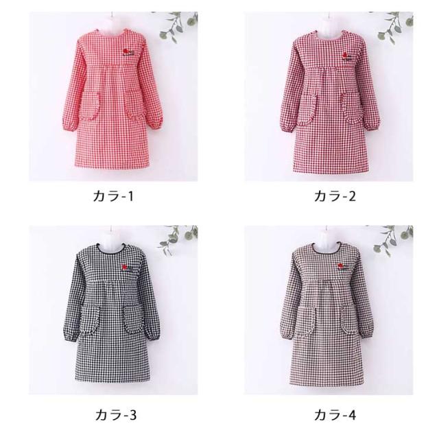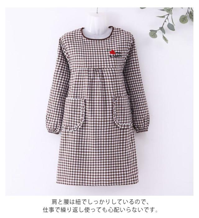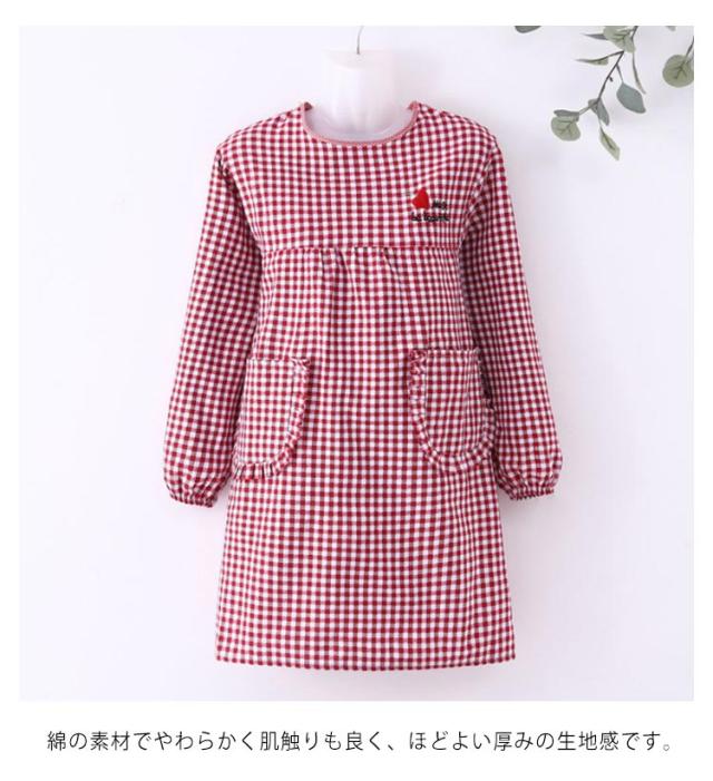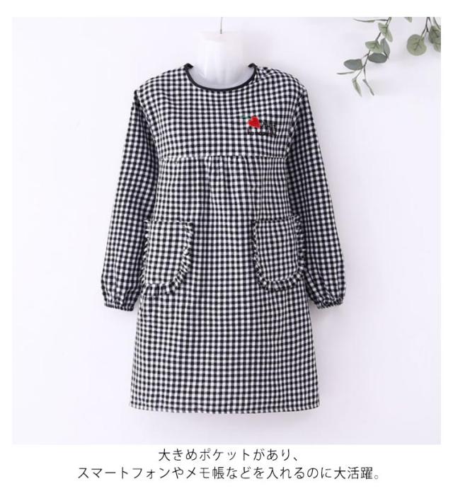 割烹着 エプロン 女性用 袖付き レディース 長袖 チェック 保育士 介護士 ガーデニング 料理教室 ポケット付き お洒落 耐久性 保育園 幼稚園 通気性 後ろ開き 送料無料