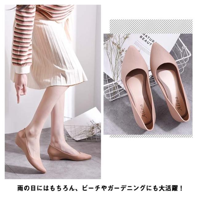 防水 パンプス 歩きやすい ポインテッドトゥ パンプス レイン パンプス レディース レインパンプス 晴雨兼用 レインシューズ パンプス 雨靴 おしゃれ 通勤 ローヒール パンプス ウェッジソール 梅雨 オフィス 滑り止め