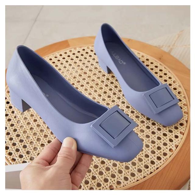 晴雨兼用 レインシューズ パンプス レディース おしゃれ レイン パンプス レインシューズ レインパンプス スクエアトゥ パンプス ローヒール パンプス 防水 雨靴 チャンキーヒール パンプス 太めヒール 歩きやすい