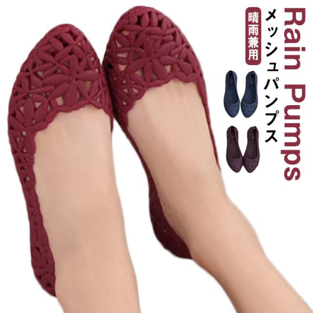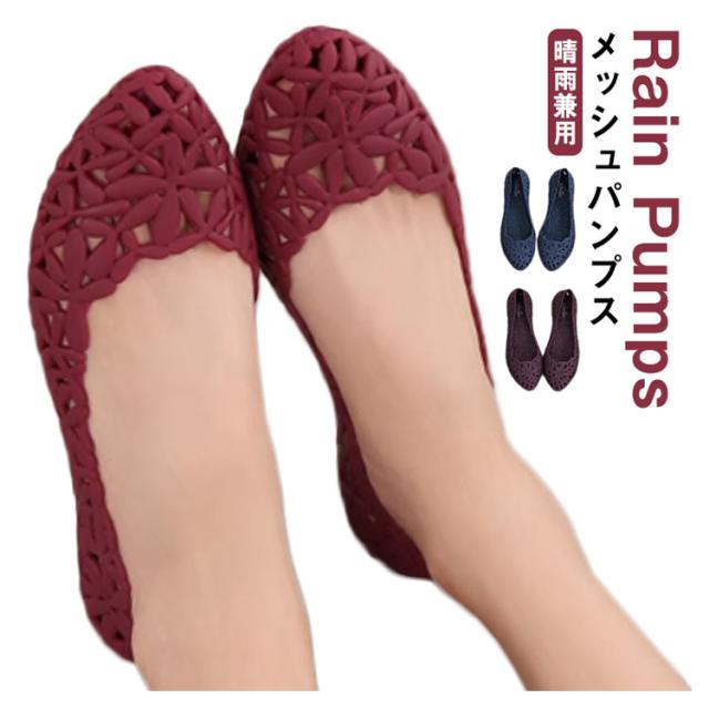 サマーサンダル メッシュ パンプス メッシュ サンダル レインパンプス 晴雨兼用 レディース 夏 レイン パンプス ぺたんこ パンプス 歩きやすい レイン サンダル ビーチサンダル ローヒール パンプス 夏 ラウンドトゥ レインシューズ パンプス