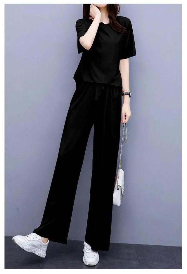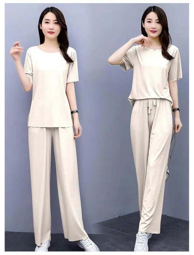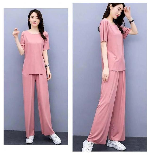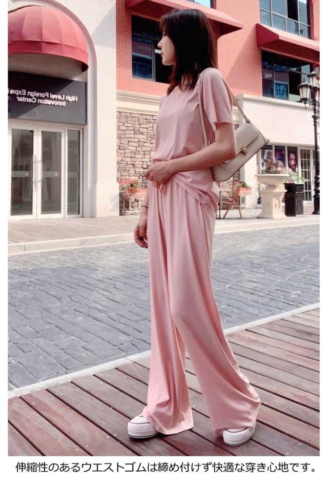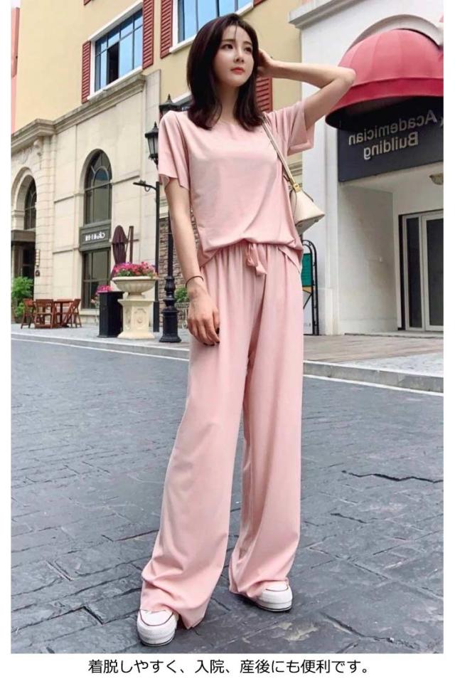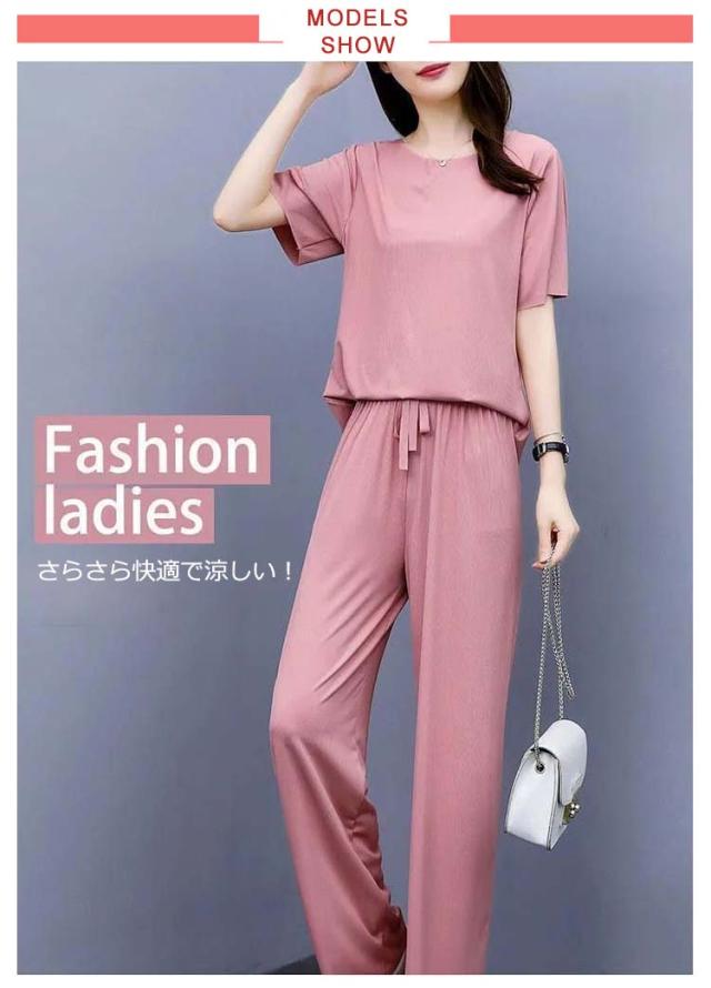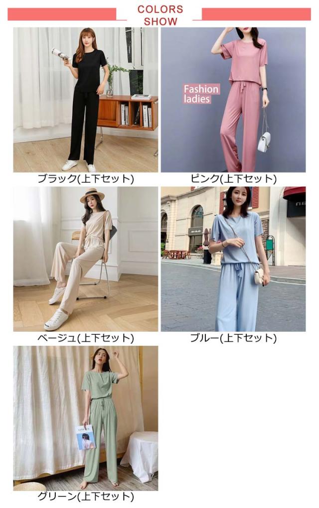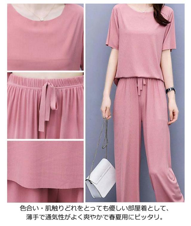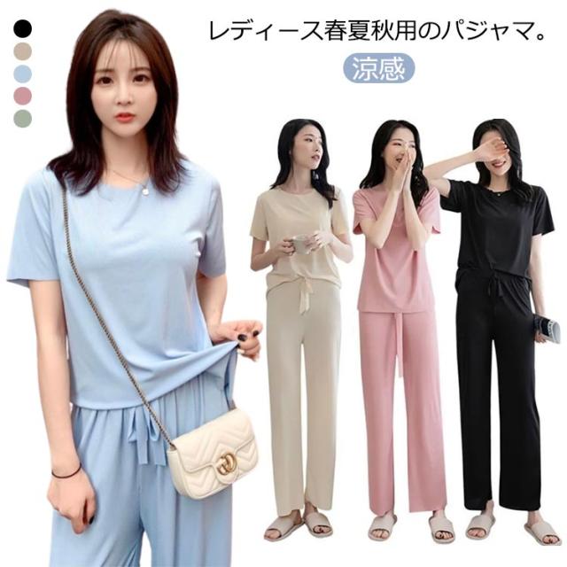 5色展開 セットアップ パジャマ レディース ルームウェア 涼感 ひんやり 半袖tシャツ+ロングパンツ 春夏 楽ちん リブ 送料無料 上下セット ウエストゴム 部屋着 無地 母の日 かわいい