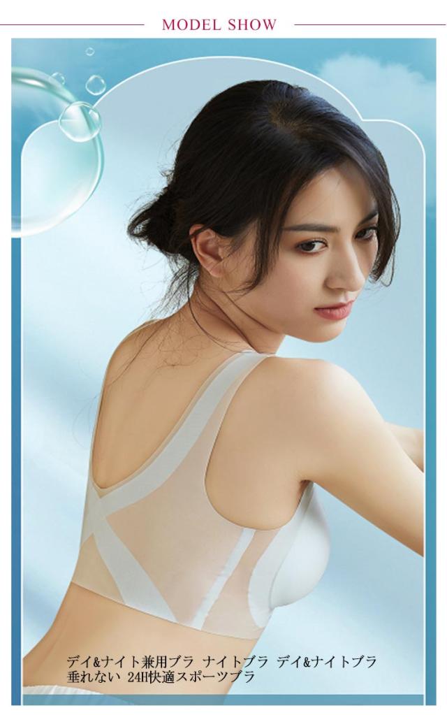| 【締め付けないノンワイヤ】【どんなシーンでも使える】【ストレスフリー】 デイ&ナイト兼用ブラ ナイトブラ デイ&ナイトブラ 垂れない 24H快適スポーツブラ 透けにくい・インナーラインが服に響かない! ノンワイヤーでもバストをしっかり覆ってしっかり支えます。 脇高&幅広設計で背中から脇にかけてのハミ肉をしっかり支え、サイドのラインをすっきりととのえる。 小さく見える効果ある一体型フルカップブラジャー。 肩にくい込みにくい幅広ストラップは、肌側がポコポコしているからズレにくく快適です。 特有のv字型バックストラップで背中をフラットに抑え、スッキリとした後ろ姿に。 | |
