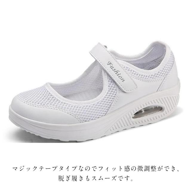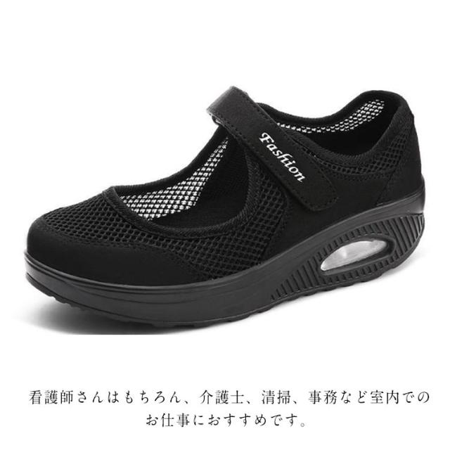 | 柔軟で軽便な靴底、 アッパーは一体織りメッシュを採用し、通気性に優れた。 インソールも抗菌防臭加工を施して、軟らかくて、履いたその日から足になじみやすくなっています。 アウトソールは耐摩耗性に優れたMDゴムを採用して、付着力が強くて滑りにくく、 クッション性も強化し、地面との反発力を高め、グリップ性が向上し、お年寄りは安心して履きやすいです。 マジックテープタイプなのでフィット感の微調整ができ、脱ぎ履きもスムーズです。 看護師さんはもちろん、介護士、清掃、事務など室内でのお仕事におすすめです。 | |