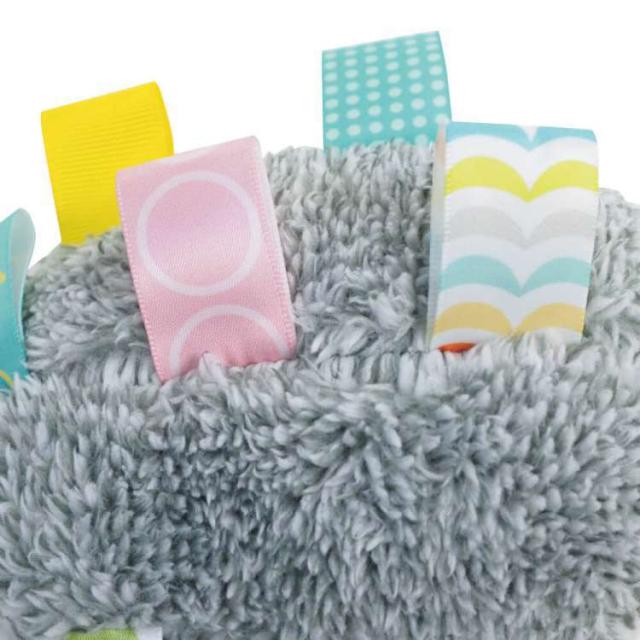 リボンやタグを握ったりおしゃぶりしたりすることで、赤ちゃんの情緒安定の手助けをします。
