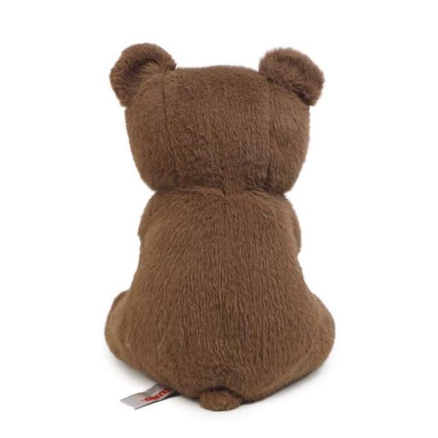 ダークブラウンの体とは対照的なベージュの口元と足パッドが特徴でふわふわでとても柔らかい素材のテディベアです。
