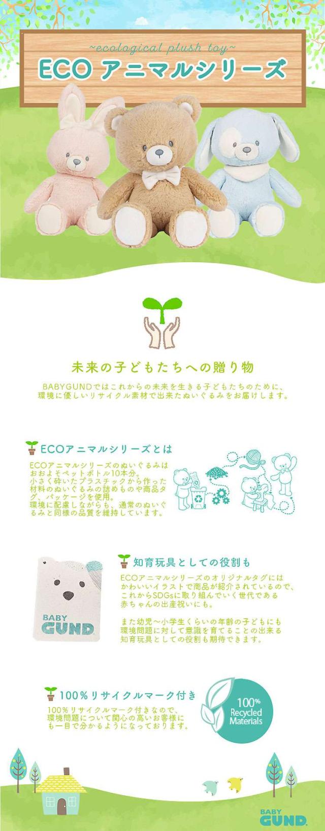 GUND ガンド ぬいぐるみ ECO バニー うさぎ ウサギ 兎 Rabbit リボン 人気 ブランド ギフト 贈り物 プレゼントに最適 対象年齢 3才以上 6066016