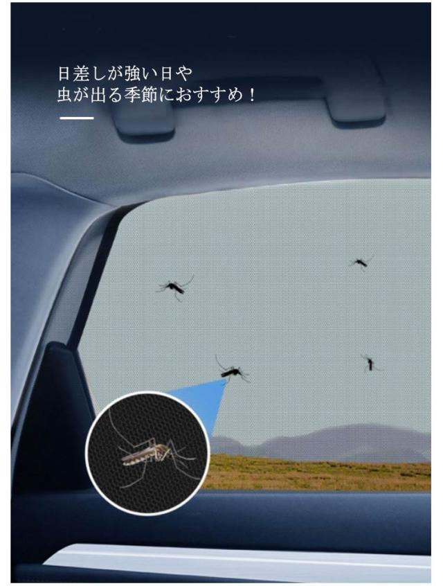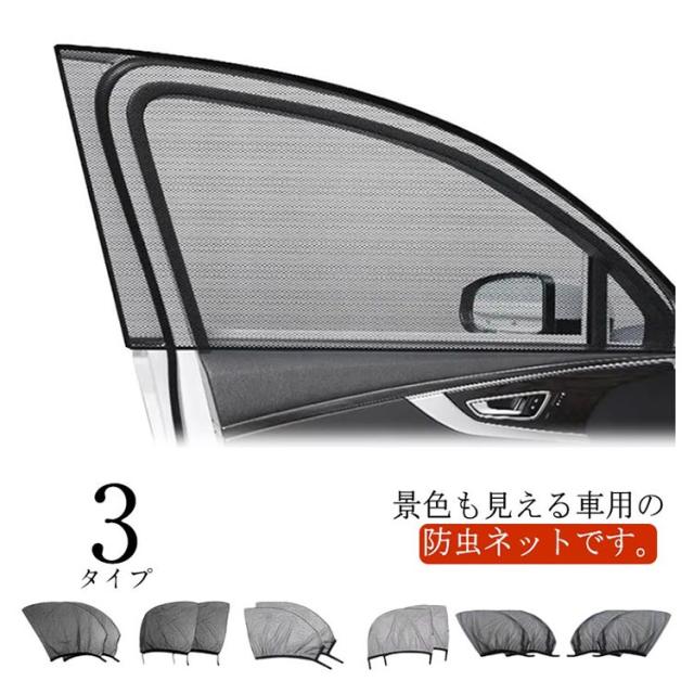 日除け 虫よけ 取り付け簡単 車用品 車用 ウィンドーネット 防虫ネット 蚊帳 夏用 メッシュ 暑さ対策 車窓用 涼しい 便利 グッズ ネット メッシュ アウトドア レジャー 4枚入り 網戸