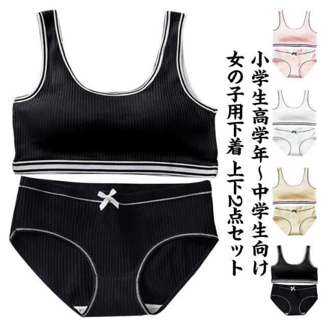 ジュニアブラジャー カップ付き 2点セット 女の子 ショーツ ガールズ 上下セット ブラ コットン 下着セット インナーパンツ キッズ 肌着 ブラジャー アンダーウェア ジュニアブラ スポーツブラ 中学生 小学生 下着 ガールズ 肌着 綿 送料無料