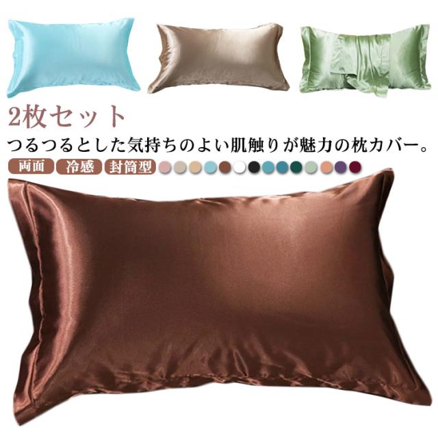 ピロケース 美容 冷感 封筒型 シルク調 まくら 安眠 髪 両面 光沢 保湿 カバー 寝具 枕カバー 滑らか 柔らかい 2枚セット 枕 感 涼感 接触冷感 ひんやり つるつる カバー 滑らか ヘアケア 北欧 まくらケース ピローカバー 2枚セット