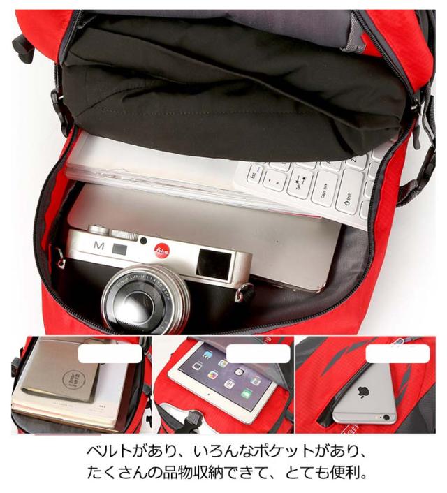 | アウトドアを楽しめるリュックサック。 摩擦や破れに耐え、丈夫なナイロン素材を採用しています。 防水性能を持っていて、雨でも安心使用。 ベルトがあり、いろんなポケットがあり、たくさんの品物収納できて、とても便利。 ショルダーパットは弾力のある厚みを加えたメッシュスポンジ材使用。 背中に接する部分はメッシュ構造で通気性が良くて、有効的に背中の乾燥を保持し、快適感を感じます。 | |