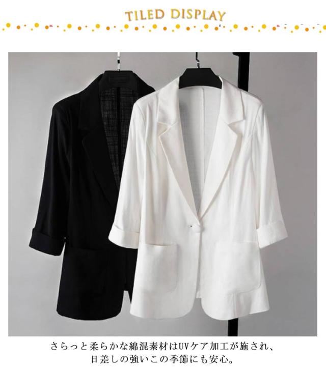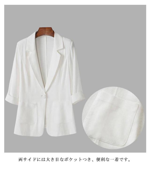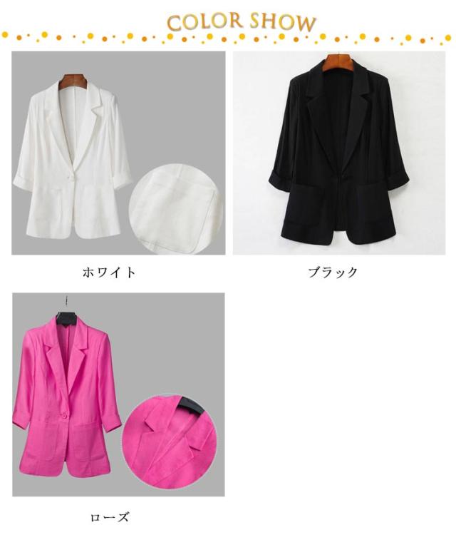 夏ジャケット サマージャケット アウター テーラードジャケット 春 ホワイト 春 綿麻 リネンジャケット リネン レディース 薄手 七分袖 夏 大きいサイズ 綿麻ジャケット 綿麻ジャケット OL オフィスカジュアル 通勤服 ブラック ローズ ジャケット