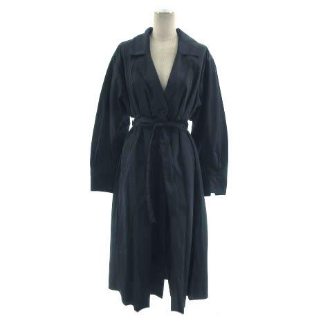 【中古】ムルーア MURUA コート チェスターコート ボリュームスリーブ リボンベルト シャイニー 光沢 紺系 F