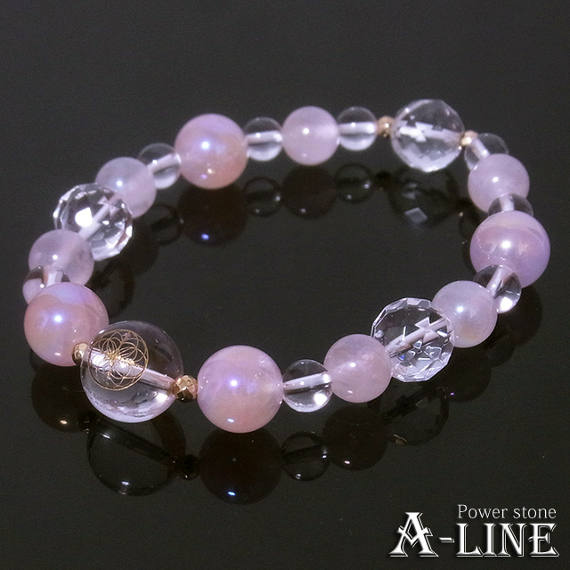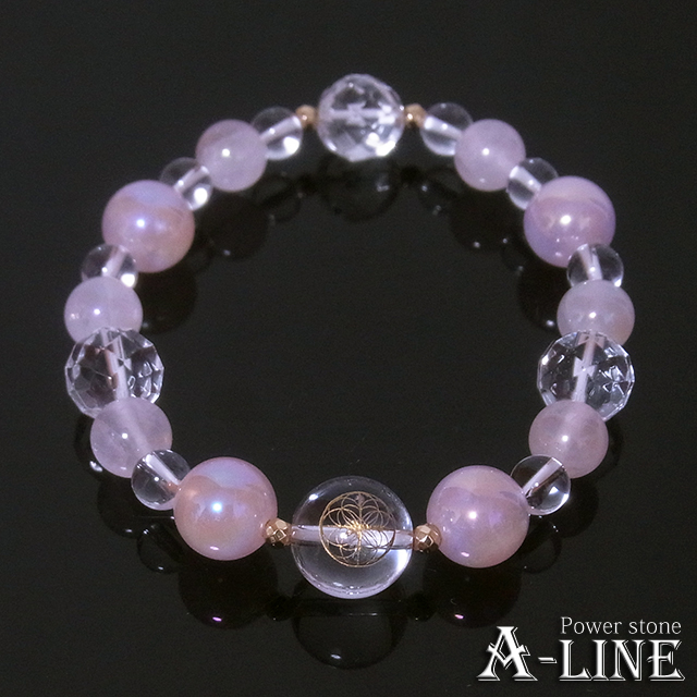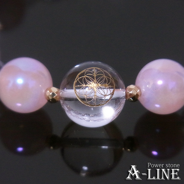 パワーストーン ブレスレット 神聖幾何学金彫り水晶12mm ローズクォーツオーラ10mm&8mm PW-3493