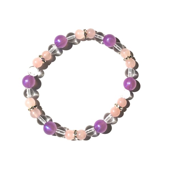 ●材質/水晶(6mm)・ローズクォーツ(6mm)・UVビーズ(8mm)・ロンデル