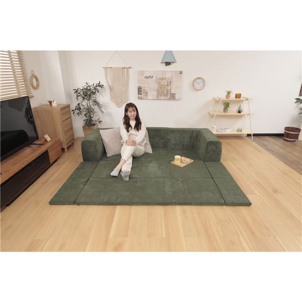 洗えるラグ付ローソファ/フロアソファ(コーディロイ生地) Mサイズ グリーン 【北海道・沖縄・離島配送不可】