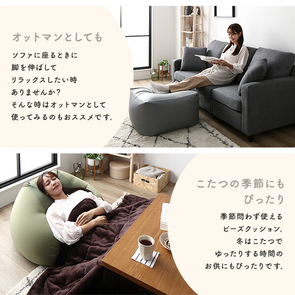 季節問わず使えるビーズクッション。