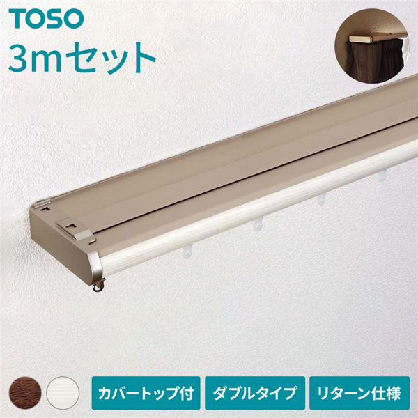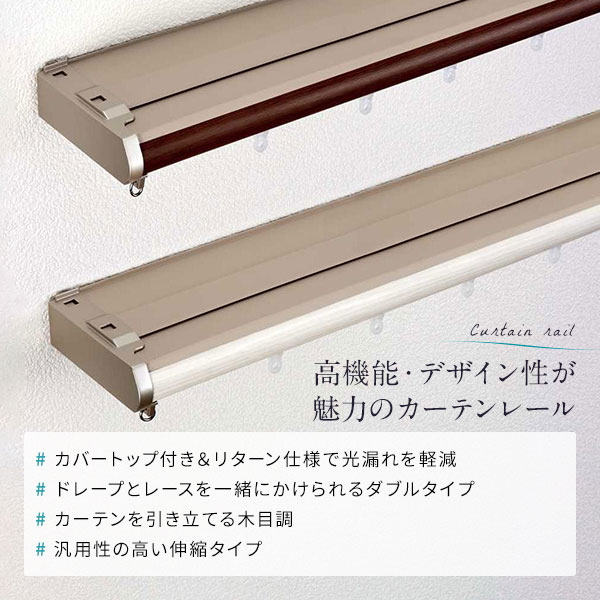伸縮 カーテンレール 〔3m セット 木目ホワイト〕 カバートップ付き ダブル リターン仕様 リネアカバー 遮光 木目調 光漏れ防止 【北海道・沖縄・離島配送不可】