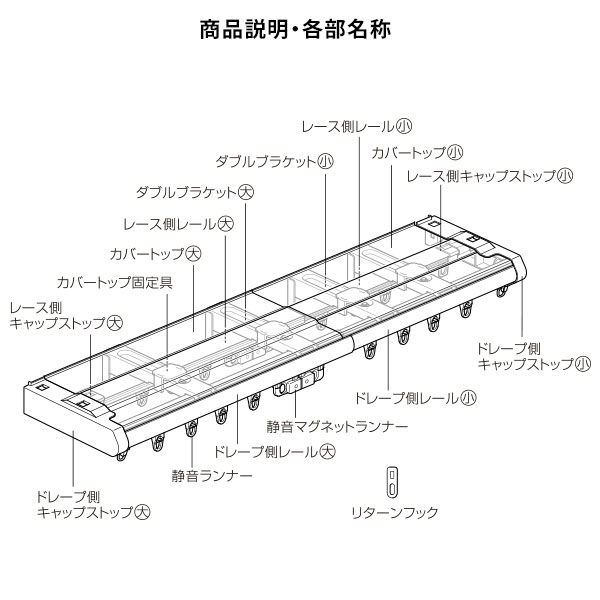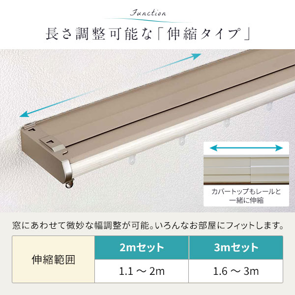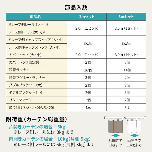 ●本商品は仕入元より配送となるため、北海道・沖縄・離島への配送はできません。 ■サイズ 2mセット:1.1m〜2.0m 3mセット:1.6m〜3.0m ■材質 レール:(ドレープ側)オレフィン系樹脂被覆金属板、(レース側)塗装金属板 ブラケット:スチール ランナー:硬質ポリエチレン+ポリエステル系エストラマー キャップストップ:(ドレープ側)ABS樹脂、(レース側)硬質ポリエチレン リターンフック:ポリカーボネート カバートップ:PVC ■生産国 日本 ■ご注意事項 必ず同封の取り扱い説明書をご確認の上、お取り付けをお願いいたします。 【ご注意事項】 本商品は、北海道・沖縄・離島への配送はいたしかねます。あらかじめご了承ください。