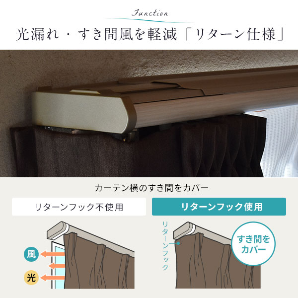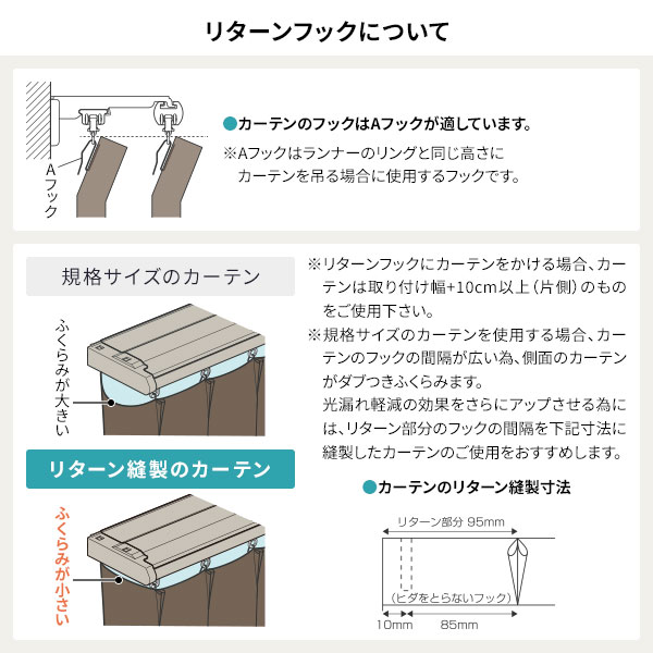 リターンフック使用でカーテン横のすき間をカバー