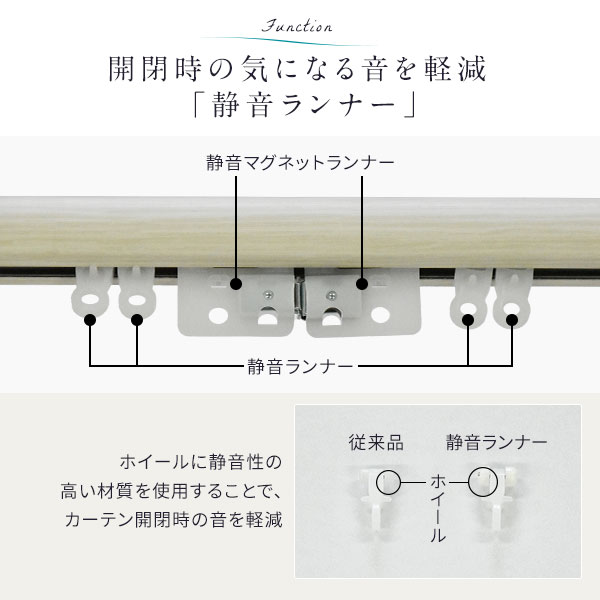 ホイールに静音性の高い材質を使用することで、カーテン開閉時の音を軽減
