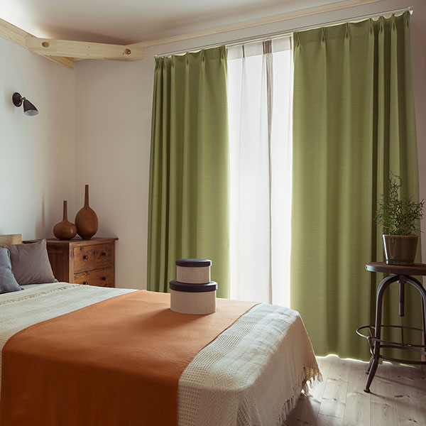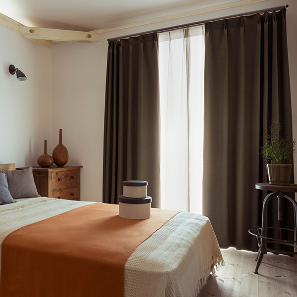 ・カーテンを引き立てる木目調