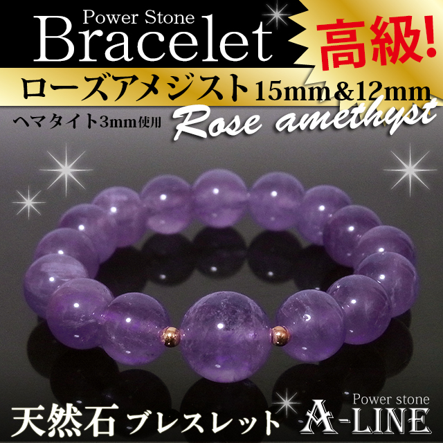 【限定数】パワーストーン ブレスレット ローズアメジスト15mm&12mm 高級ケース付き ppw344