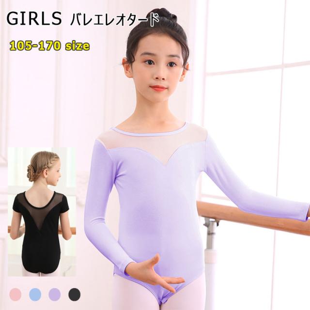 バレエ レオタード 長袖 スカートなし キッズ ジュニア 大きいサイズ バレエレオタード 練習用レオタード 新体操 コスプレ 柔軟 通気性 メッシュ 上品 優雅 バレエ衣装 105 110 120 130 140 150 160 170