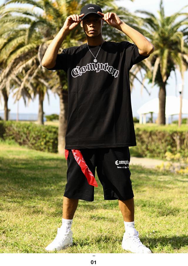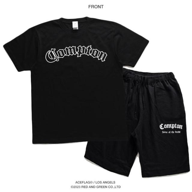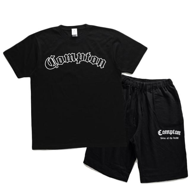 N.W.A.を輩出し、Straight Outta Comptonの舞台としても知られている「Compton」をレイアウトしたTシャツとスウェットハーフパンツの上下セット。