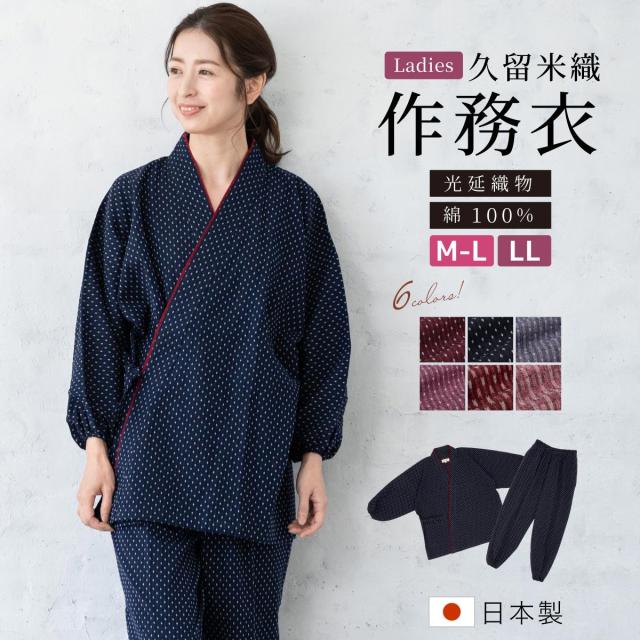 作務衣 レディース 久留米織 光延織物 綿 コットン 臙脂 紺 紫 ピンク 木綿 洗える カジュアル 部屋着 ルームウェア 女性用 送料無料