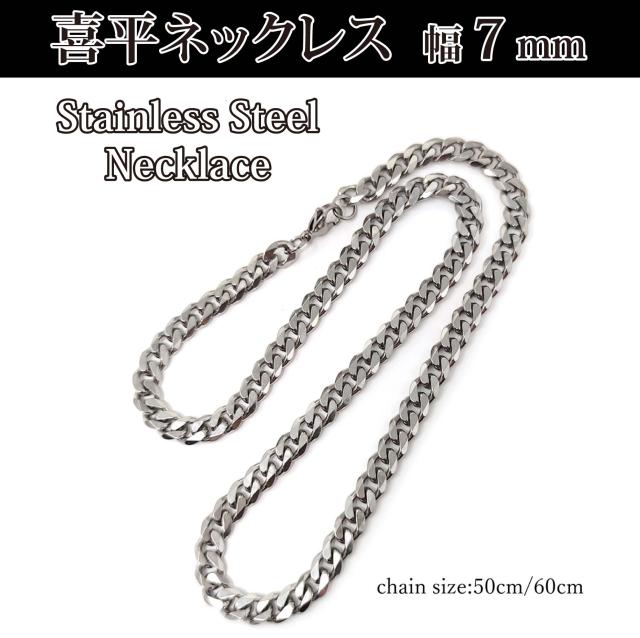 【送料無料】 メンズネックレス 喜平チェーン ネックレスチェーン 50cm 60cm 7mm幅 サージカルステンレス ステンレスチェーン 喜平ネックレス アレルギーフリー 太め 極太ネックレス