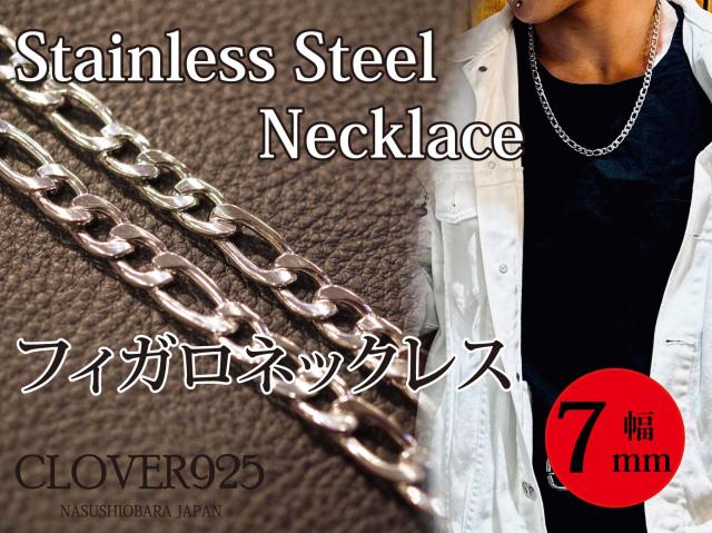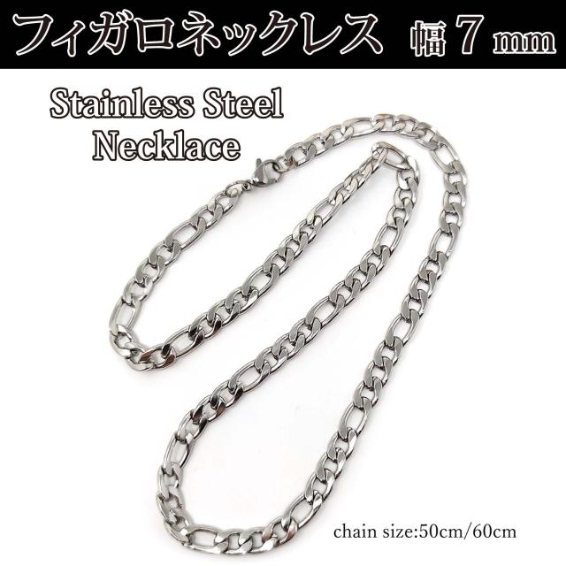 【送料無料】 メンズネックレス フィガロチェーン ネックレスチェーン 50cm 60cm 7mm幅 サージカルステンレス ステンレスチェーン フィガロネックレス 喜平 アレルギーフリー 太め 極太ネックレス