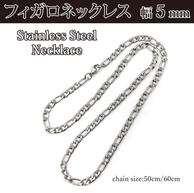 【送料無料】 メンズネックレス フィガロチェーン ネックレスチェーン 50cm 60cm 5mm幅 サージカルステンレス ステンレスチェーン フィガロネックレス 喜平 アレルギーフリー 太めネックレス