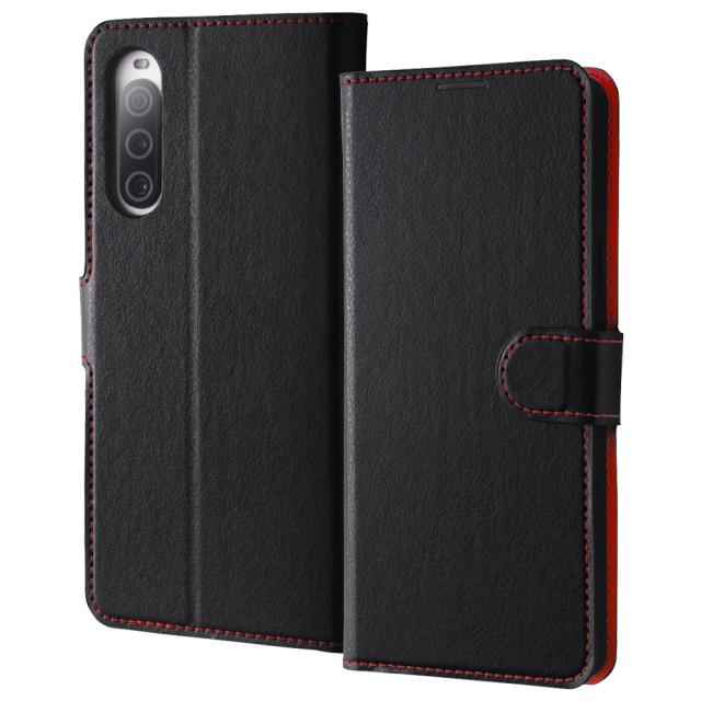 レイアウト RT-RXP10M5ELC1/BR Xperia 10 V(SO-52D/SOG11/SoftBank)用 耐衝撃 手帳型レザーケース シンプル マグネット(ブラック/レッド)[RTRXP10M5ELC1BR] 返品種別A