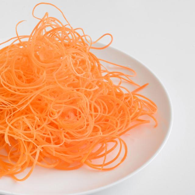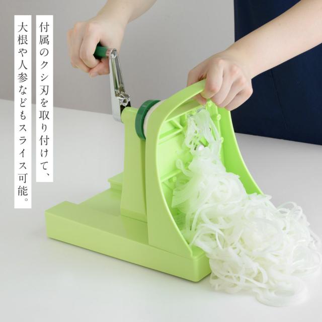 付属のクシ刃を取り付ければ、玉ねぎや人参などもスライス可能。大根をセットすれば、お刺身の「つま」も作れます。