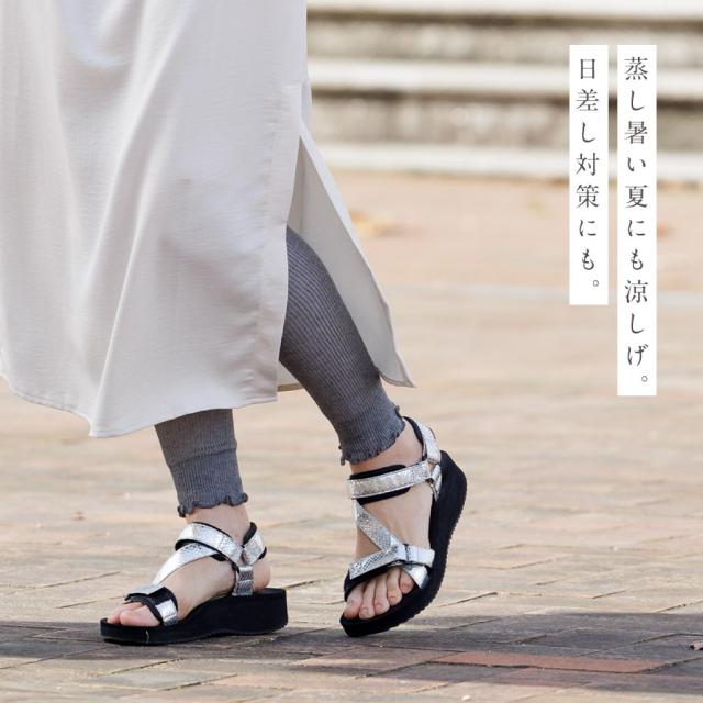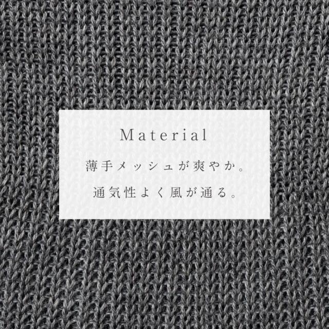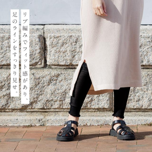 通気性の良い薄手メッシュ編み。ミドルゲージのリブ編みでフィット感があり、足のラインをすっきり見せます。