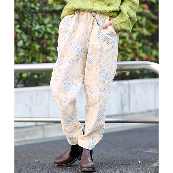 エコフレンドリーダイ ベロアキカブロックプリントパンツ
