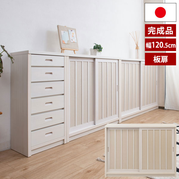 板扉キャビネット 幅120.5cm 引戸式薄型収納 白雪 天然木桐材 和モダンキャビネット 日本製 完成品 AK-0013-NS
