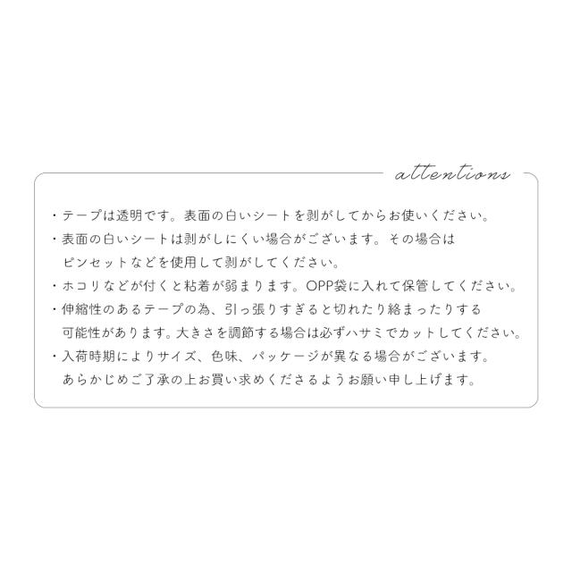 ・テープは透明です。表面の白いシートを剥がしお使いください。