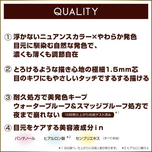 ●濃淡自在の柔らか発色。夜まで落ちないクリーミーペンシルライナー。繰り戻し可能。