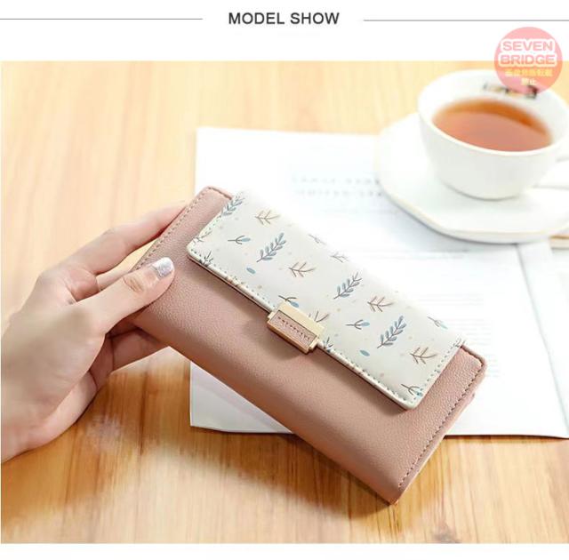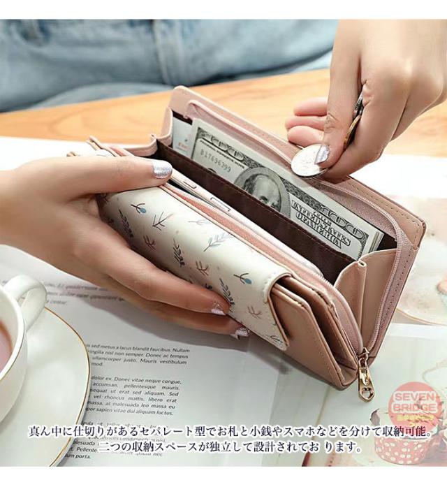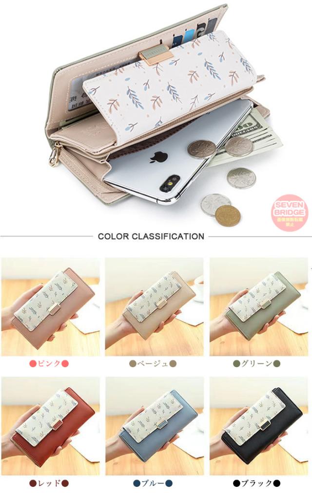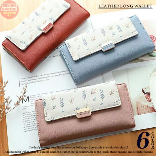 財布 レディース リーフ 長財布 PUレザー 合皮 大容量 機能的 h0498