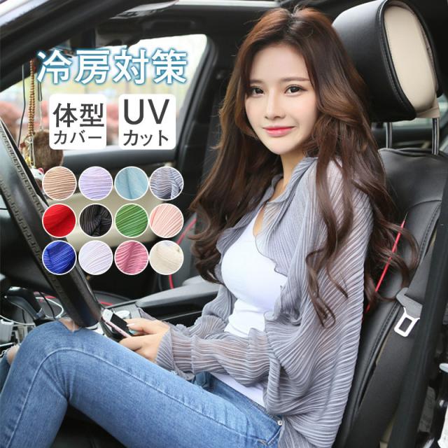 カーディガン レディース UVカット シャツ ブラウス 透け感 羽織り 長袖 プリーツ ライトアウター 薄手 日焼け対策 冷房対策